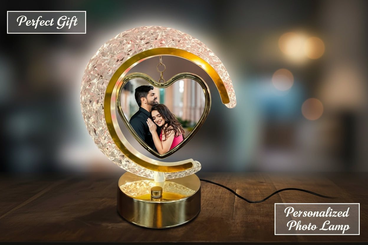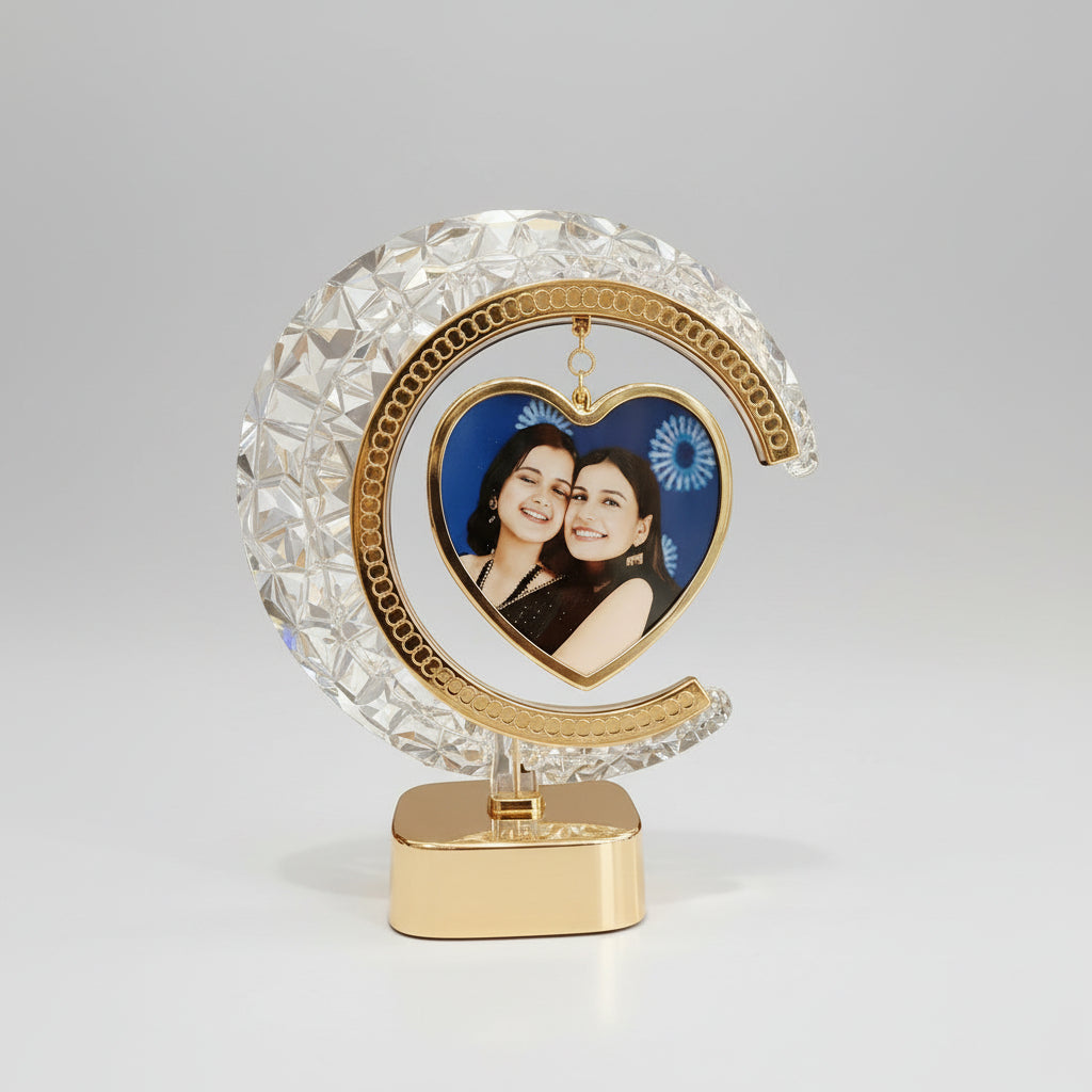 Framzy LED Crystal Moon LAMP Photo Frame for Gifting, Surprise and Anniversary Gifting Table Lamp (22.5 cm, Silver)
